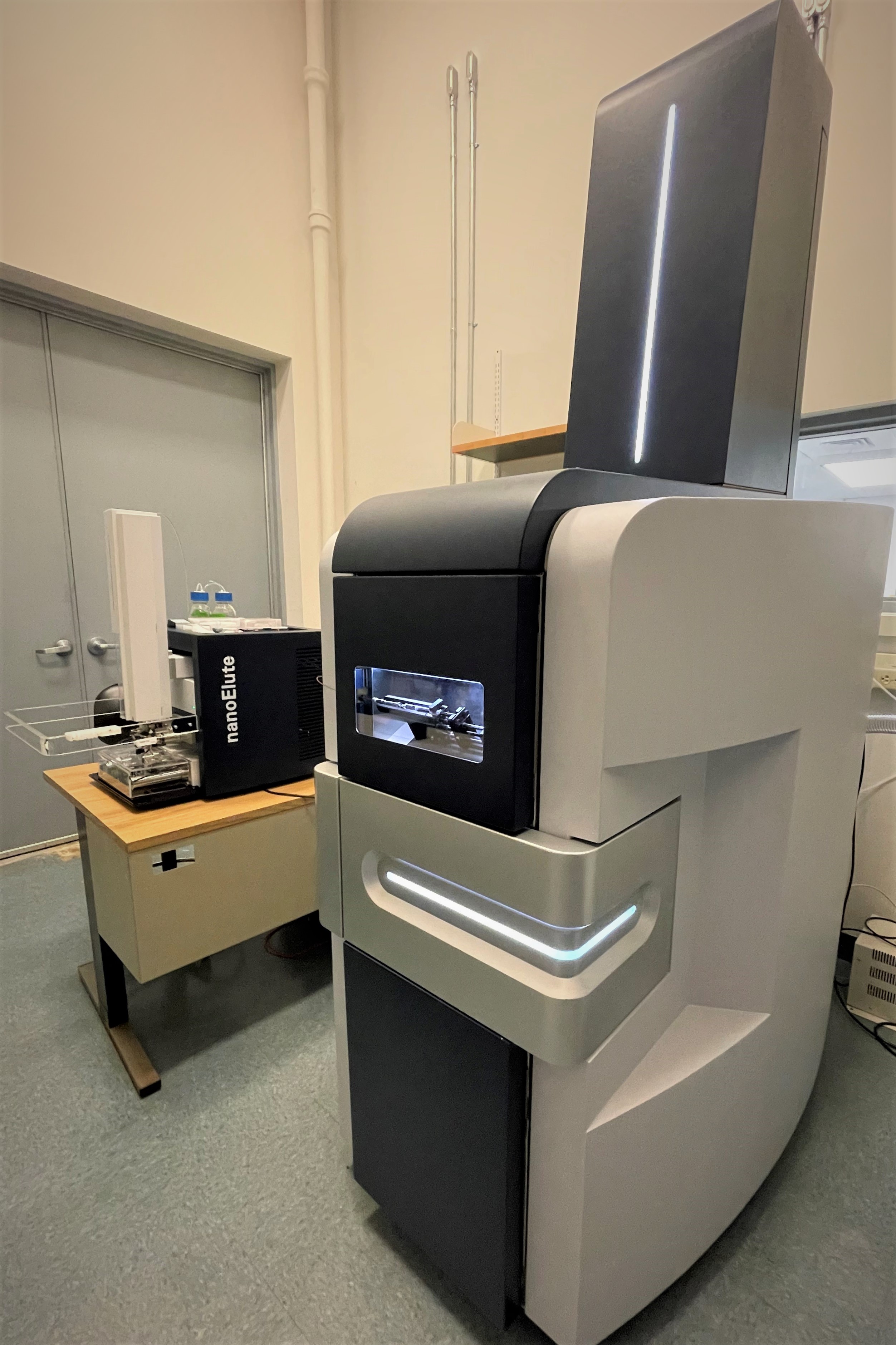 Bruker timsTOF Pro 2 with nanoElute UPLC ~quantitative proteomics~ Unlock the power of next-generation proteomics with the Bruker timsTOF Pro 2, a cutting-edge timed ion mobility quadrupole time-of-flight (QTOF) mass spectrometer delivering exceptional sensitivity, speed, and depth. Designed for high-throughput single-shot workflows or deep proteome coverage, it supports flexible nanoflow gradients to meet diverse research needs. Perfect for stable isotope labeling (SILAC) or label-free quantitation, the timsTOF Pro 2 ensures accurate, reproducible results for complex studies. Its integrated PaSER (Parallel Search Engine in Real Time) provides instant qualitative feedback on sample integrity and system performance, enabling confident decisions during acquisition. With DIA-PASEF (Data-Independent Acquisition combined with Parallel Accumulation Serial Fragmentation), this platform delivers comprehensive, unbiased proteome coverage and exceptional reproducibility ideal for large-scale studies and biomarker discovery. Learn more: Bruker timsTOF Pro 2