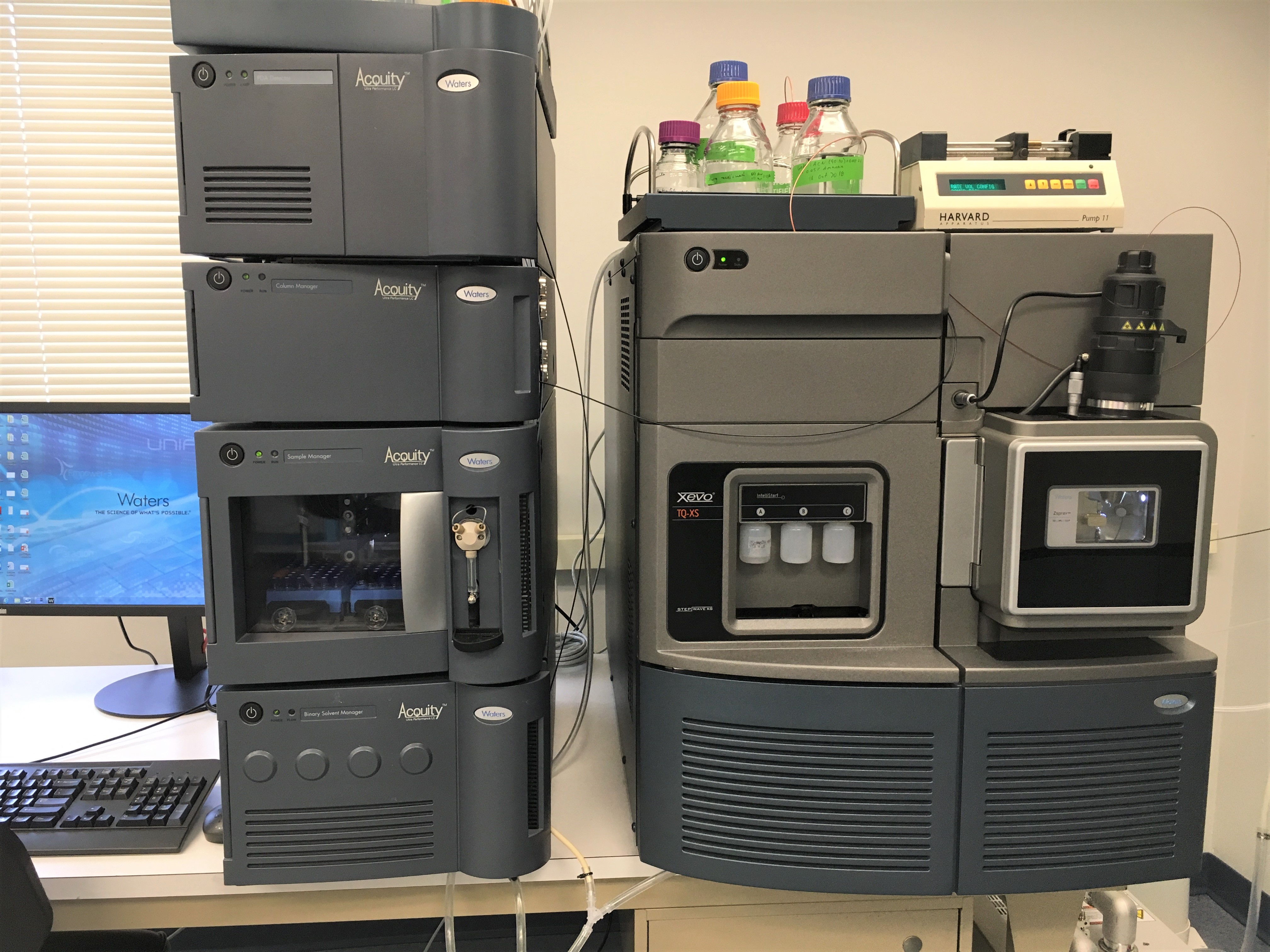 Waters Xevo TQ-XS with Acquity UPLC ~targeted metabolomics~ A triple quadrupole mass spectrometer for targeted metabolomics and small molecule quantitation using conventional flow UPLC. UPLC fitted with an inline photodiode array detector. |