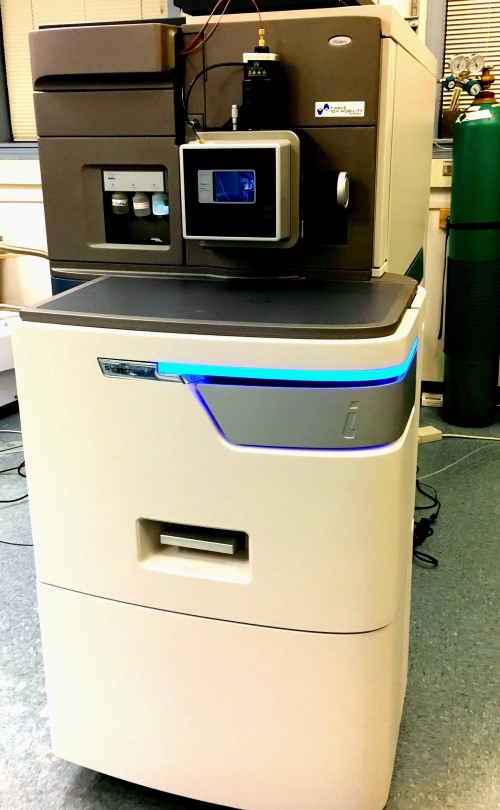 Thermo Scientific Orbitrap Fusion Lumos Tribrid with Waters NanoAcquity UPLC ~quantitative proteomics~ A quadrupole-Orbitrap-linear ion trap tribrid mass spectrometer employing HCD, CID and ETD fragmentation options. Instrument is equiped with a FAIMS PRO source for atmospheric ion mobility separations providing improved analyte selectivity and expanded proteome coverage. Analysis of complex protein digests including identification of post-translational modifications, covalently bound protein-drug adducts, and chemically cross-linked peptides. Ideal for stable isotope label (e.g. TMT, SILAC) or label-free (peptide peak area) quantitative proteomics workflows. |