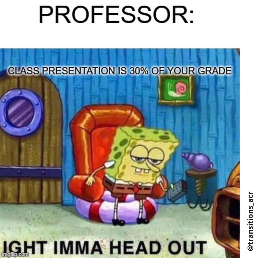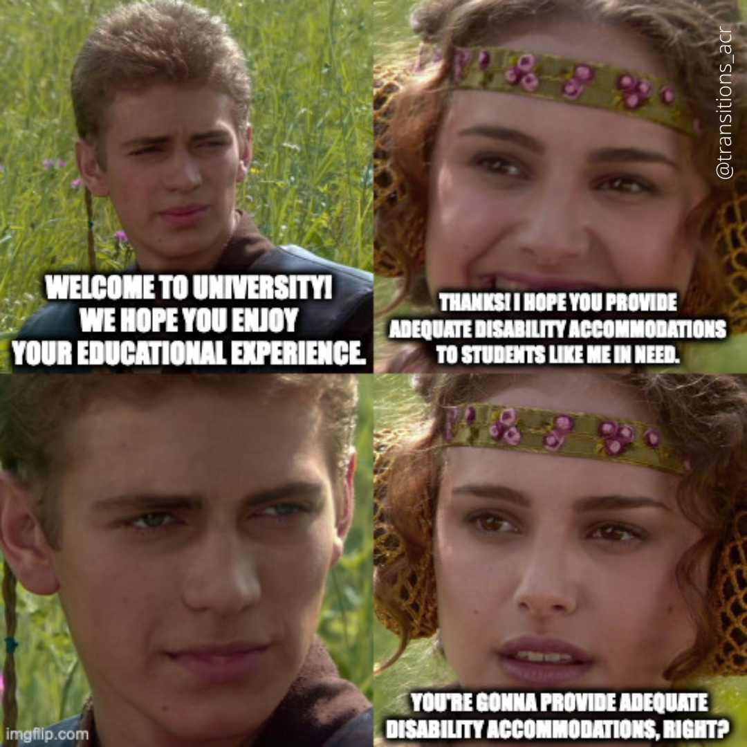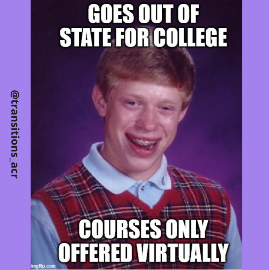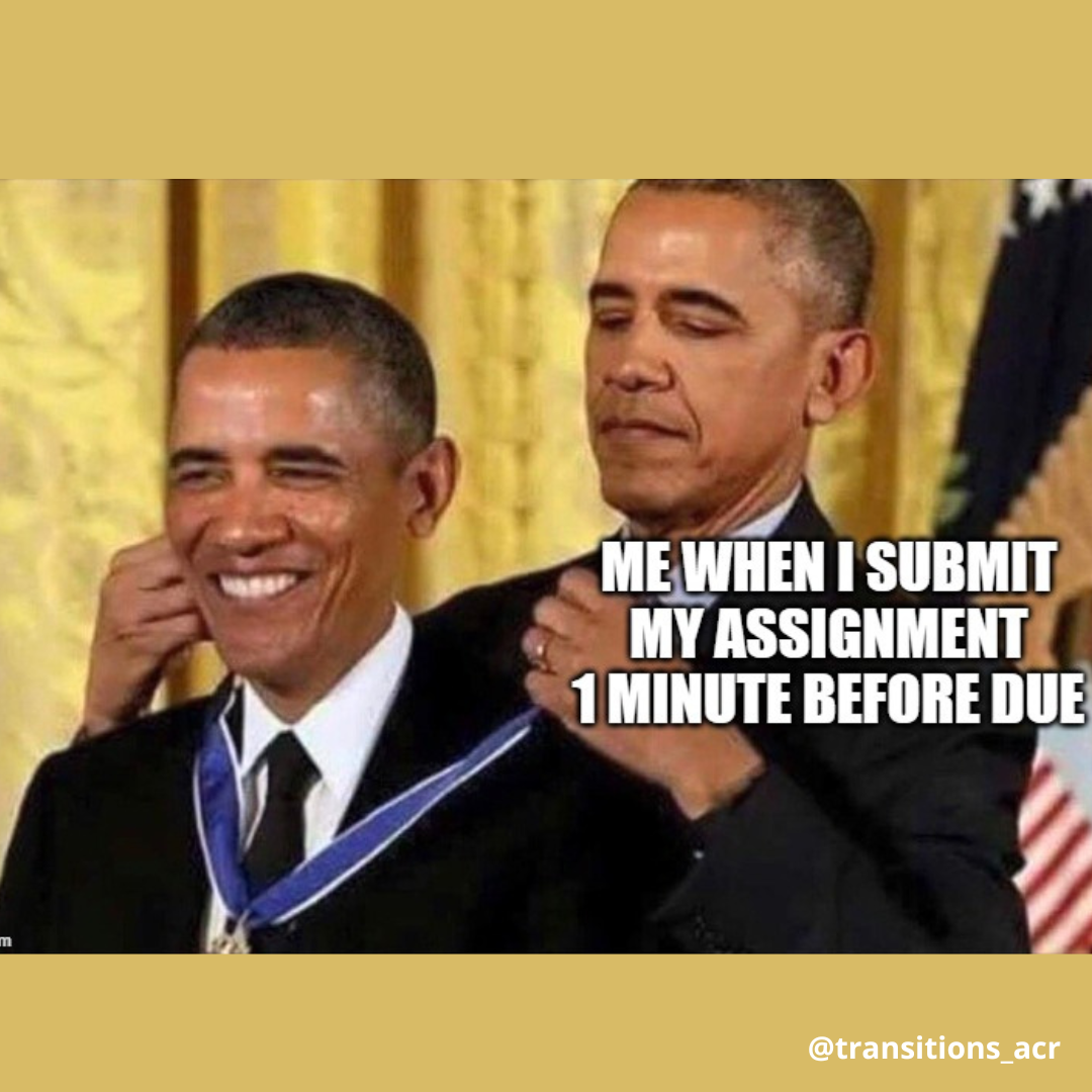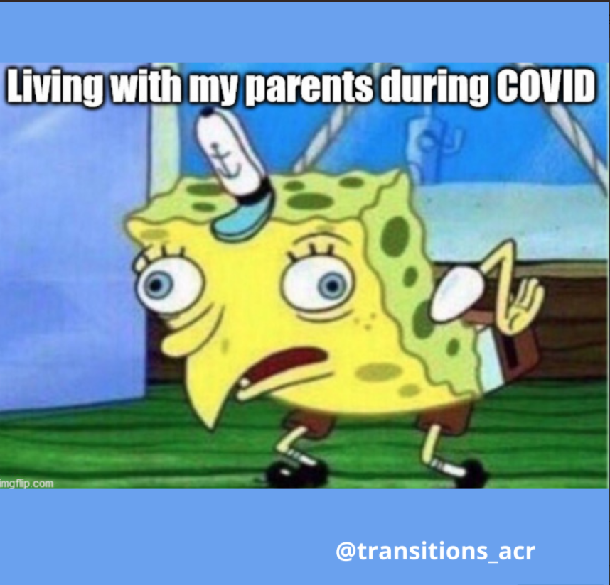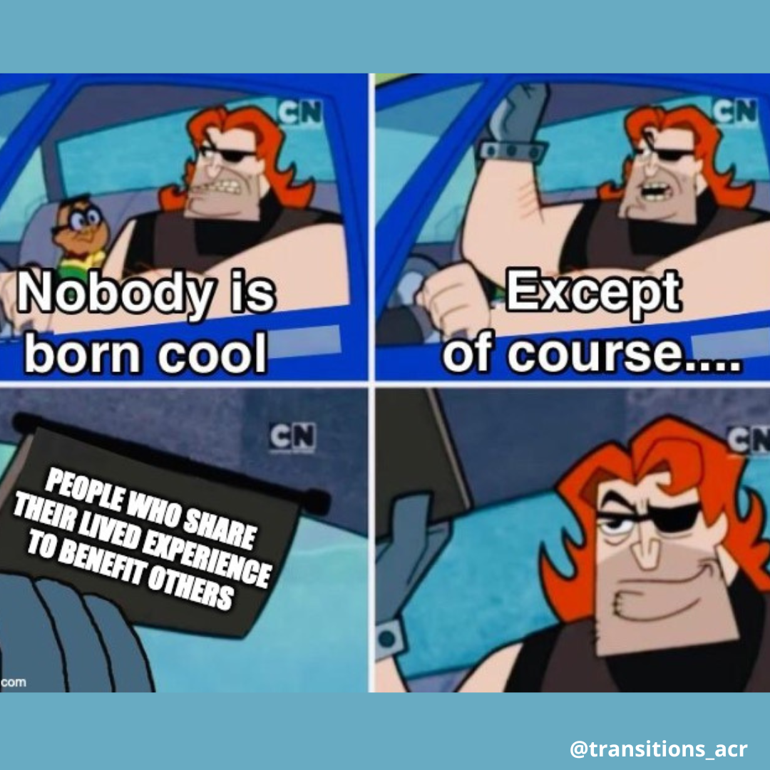 One of our youth led Learning & Working RRTC’s knowledge translation projects is developing memes that are relevant to youth and young adults living with mental health conditions. Memes use popular cultural images and simple language to convey meaningful content on social media. Started in 2019, our memes are developed in close collaboration with our National Youth Advisory Board (YAB) and posted on the Transitions to Adulthood Center for Research’s social media.