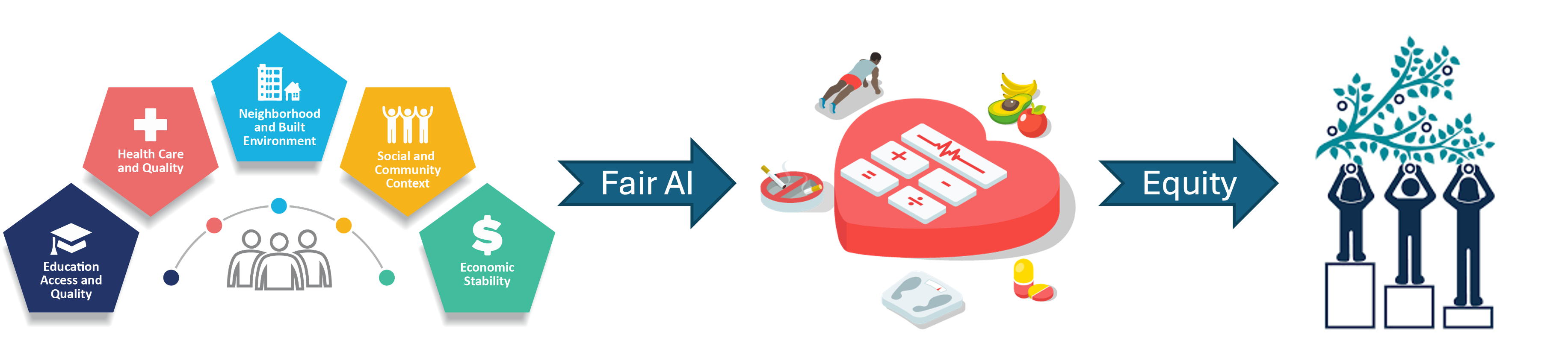 AI2Equity aims to explore advanced AI techniques for accurate, equitable, interpretable and generalizable CVD risk prediction. We will integrate comprehensive social determinants of health (SDoH) information, assess AI models's fairness, and explore bias mitigation algorithms for fair learning across different demographic subgroups.