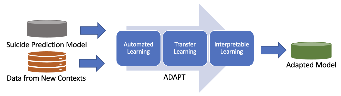 ADAPT: Automated, Data-driven, AdaPtable, and Transferable learning for suicide risk prediction