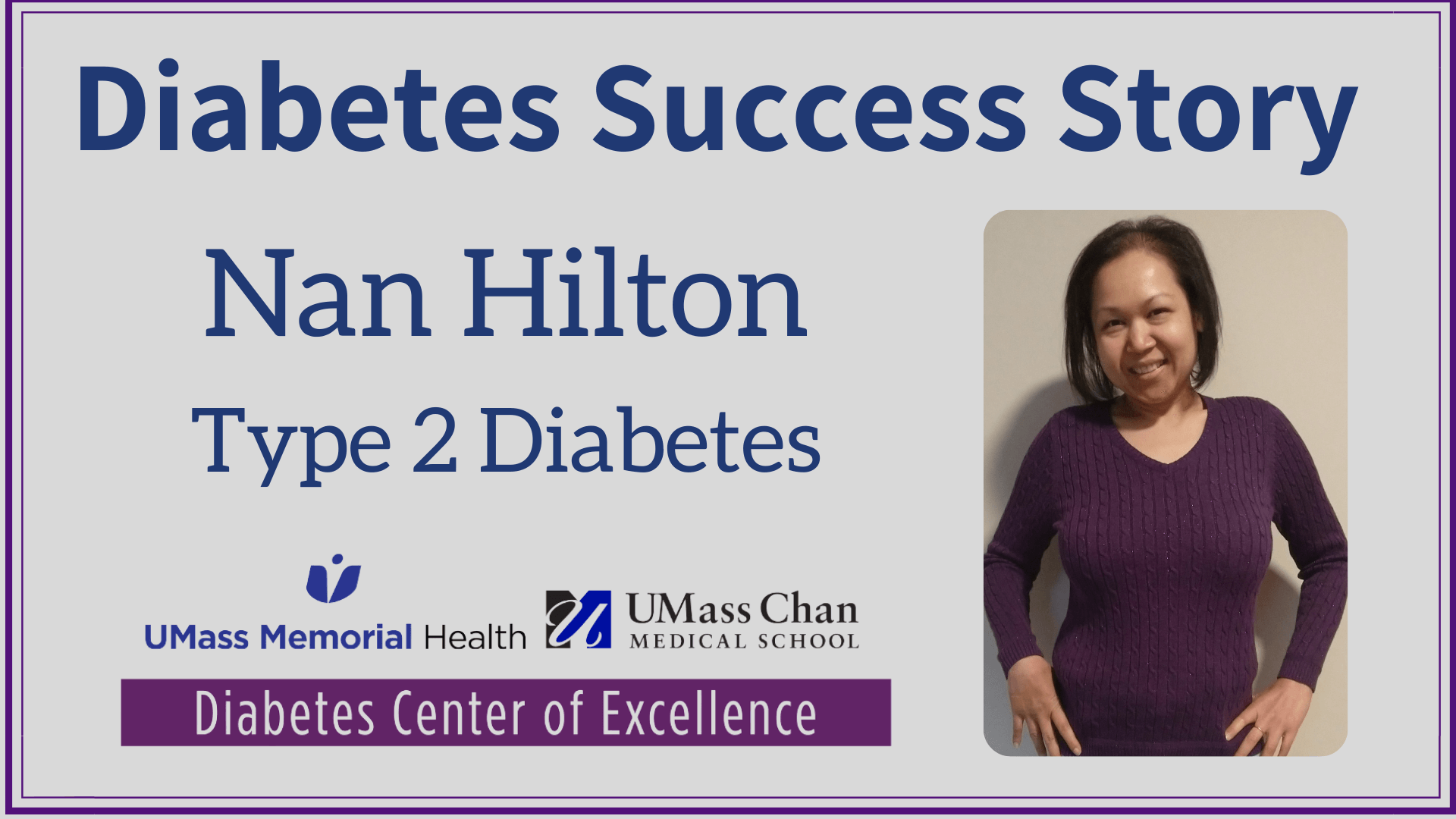 Date Posted: Friday, April 22, 2022Nan Hilton was diagnosed with Type 2 diabetes in 2006 at 23 years old. After years of taking medications and insulin, she made lifestyle modifications resulting in a 90 pound weight loss and she's no longer on any diabetes medications.