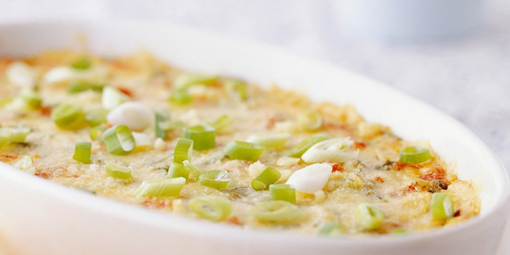 3. Bake the uncovered dip for 15 to 20 minutes or until the edges are bubbly and the mixture is heated through. Sprinkle with the remaining two tablespoons of green onions.