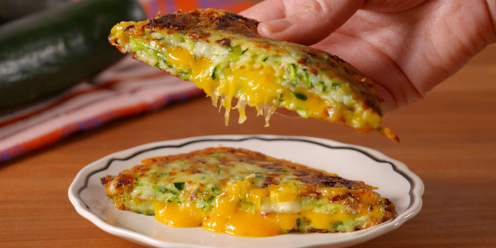 - Place two zucchini patties in the same pan/skillet over medium heat. Top both with shredded cheese, then place the two remaining patties on top to form sandwiches. Cook for about two more minutes per side or until the cheese has melted. Repeat with remaining mixture.