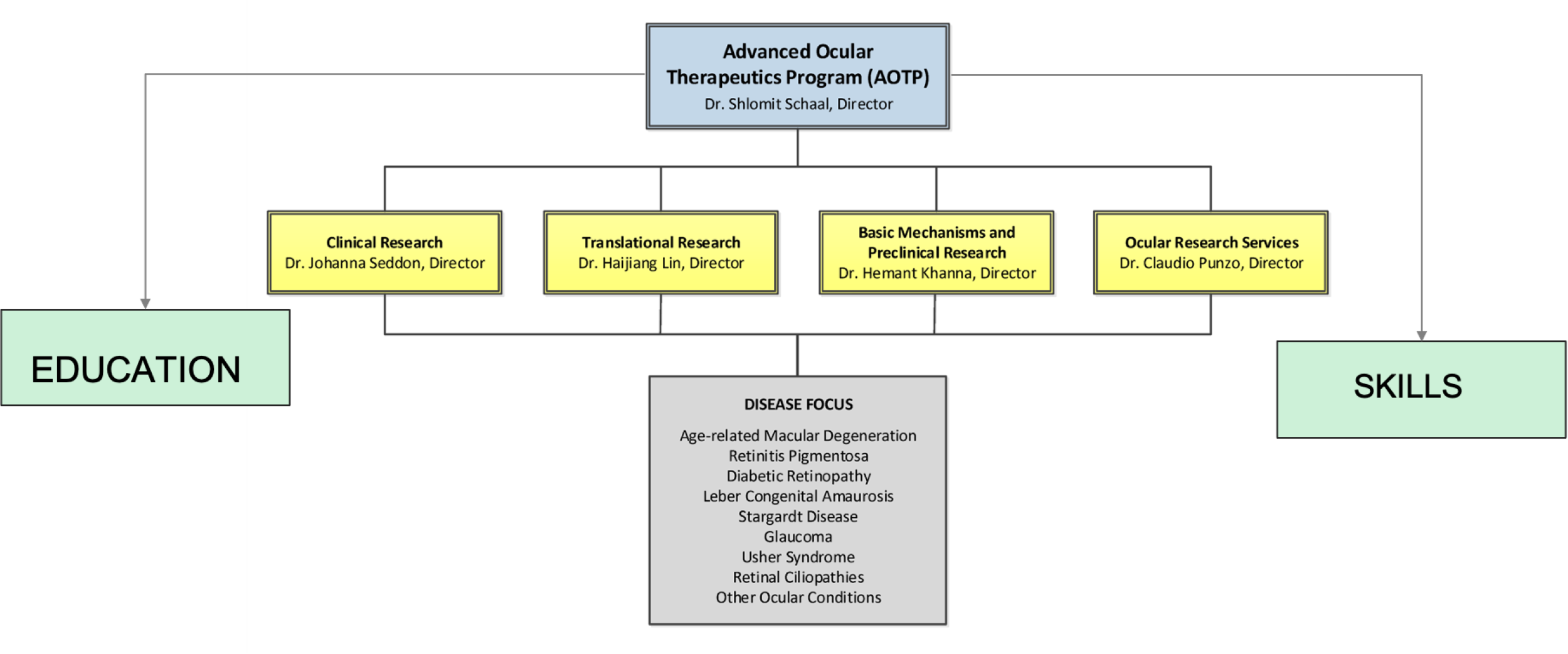 To advance the development and application of innovative ocular therapies through cutting-edge and collaborative basic, preclinical, translational, and clinical ocular disease research and to recruit and train the next generation of physicians and scientists who will be the driving force of our program.