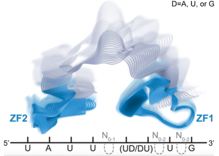 Structure and dynamics of the CCCH-type tandem zinc finger domain of POS-1 and implications for RNA binding specificity