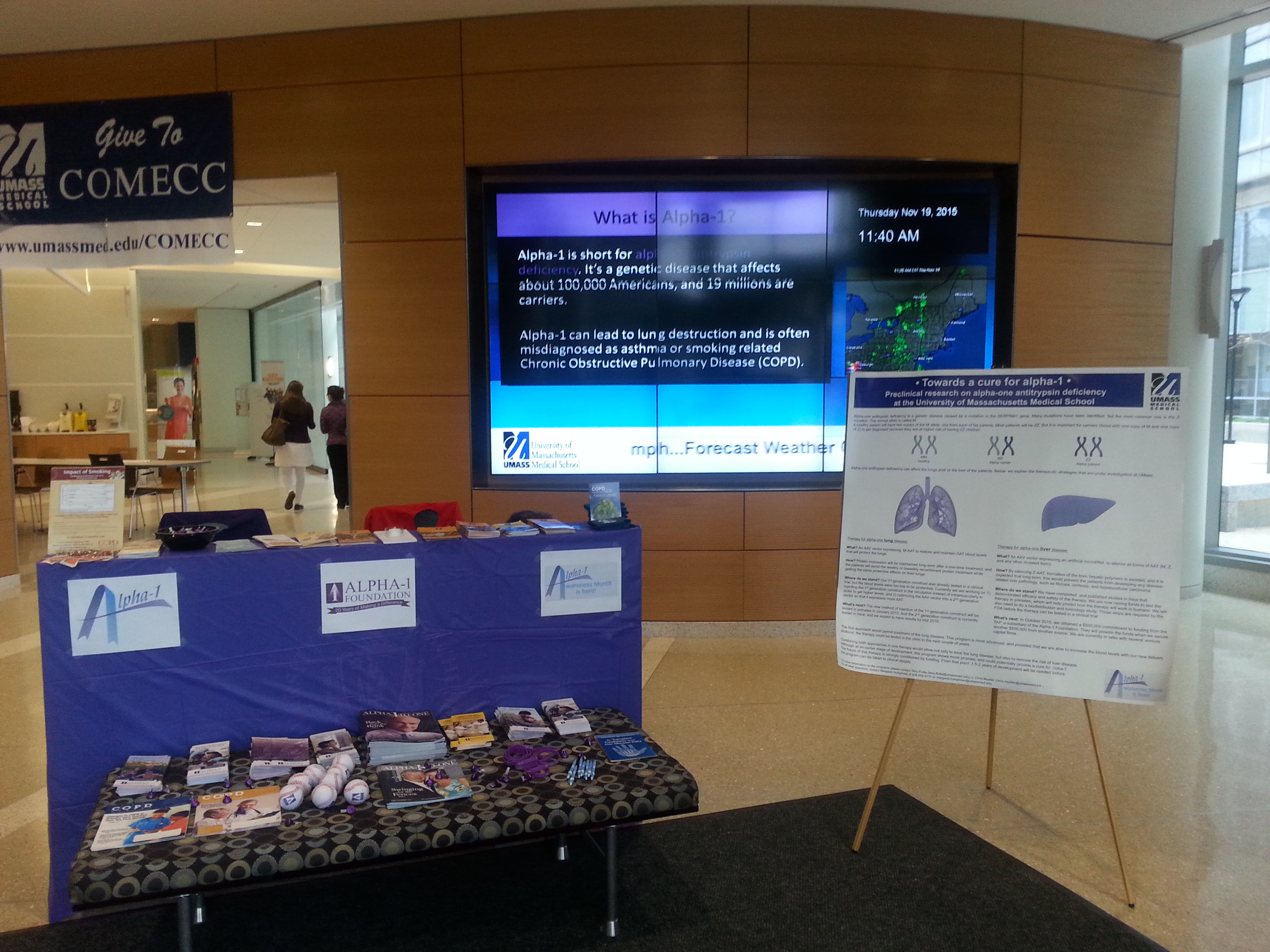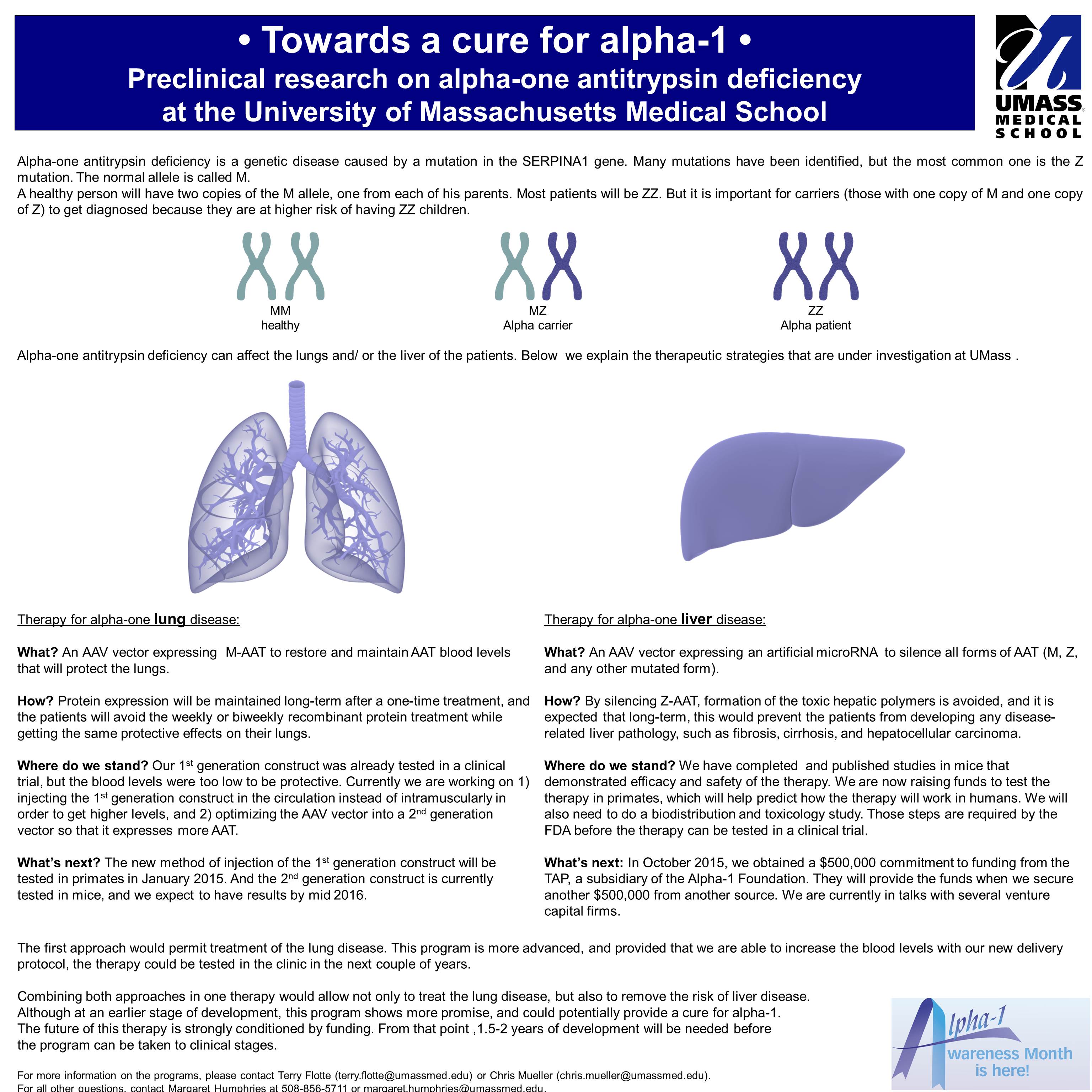On November 19th, we will also host a special day-long event at UMass together with the Alpha-1 Foundation, where people can come meet fellow Alphas, share their story, and learn more about the research we do at UMass.