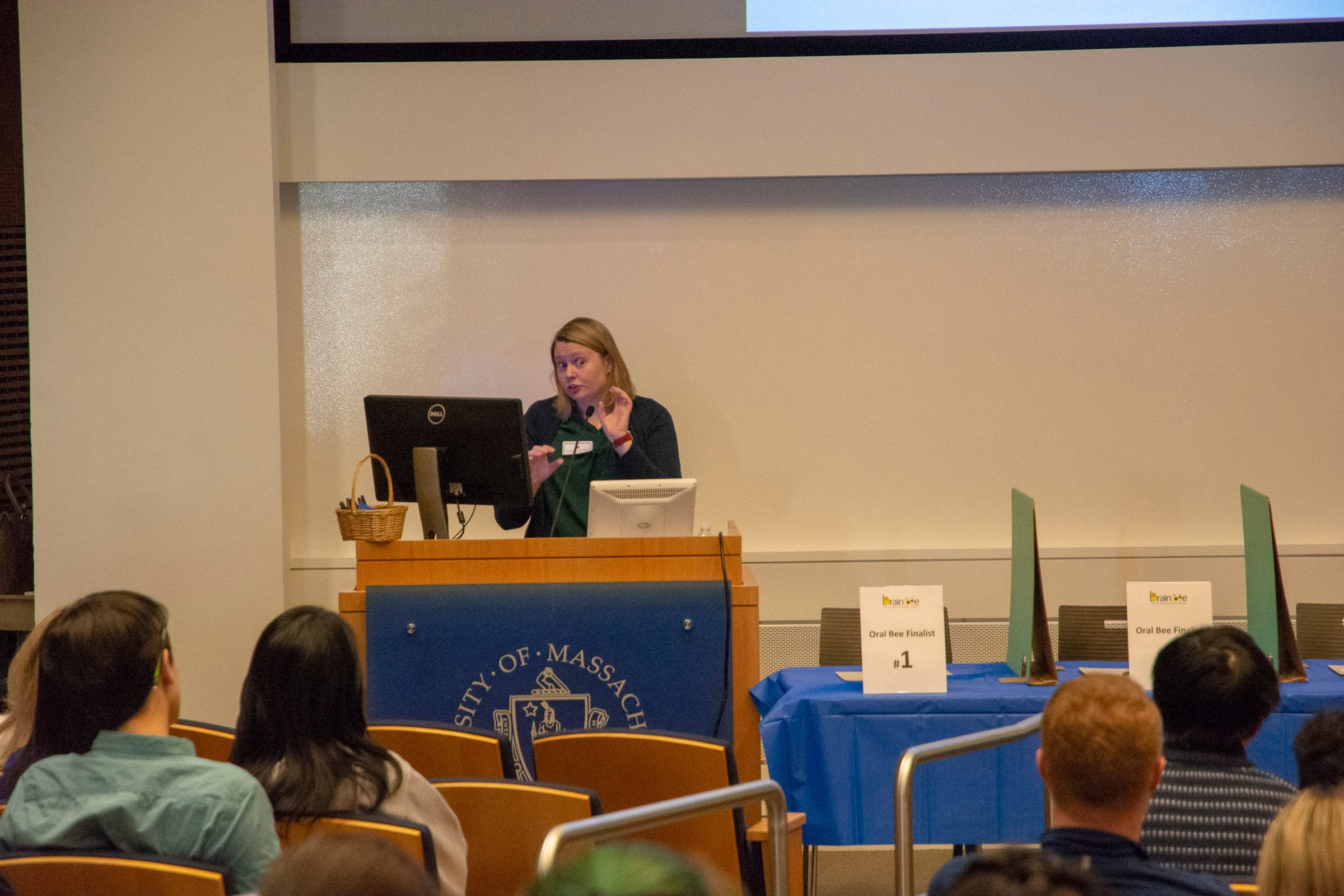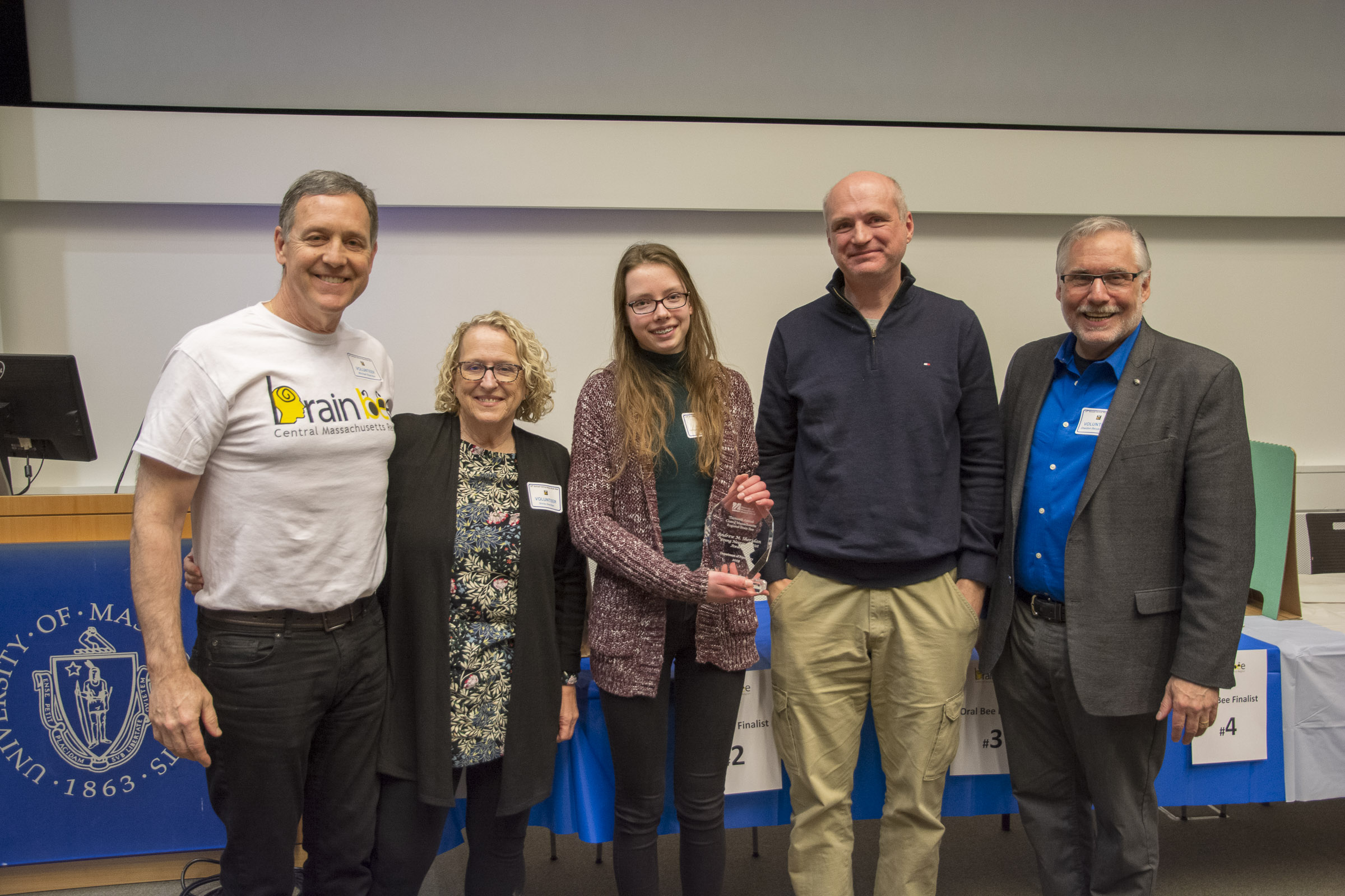 Congratulations to Petra Dujmic from Arlington Catholic High School. Petra was the winner of the 13th Annual Central Massachusetts Regional Brain Bee competition and the Andrew M. Sheridan Young Neuroscientist Award. Asked how she felt to have won the Brain Bee, Petra had this to say. “I just wanted to thank Dr. Benjamin, Mr. and Mrs. Sheridan, and all 39 volunteers for continuously extending this exciting opportunity to high school students and enabling the Brain Bee to be one of the most educational, memorable, and pleasurable events in our student careers! Thanks to the Brain Bee, I have finally decided upon a future career in neuroscience, and am super excited to continue learning about the brain for the National Bee in proud representation of Massachusetts!” Petra represented UMass at the National Brain Bee competition held on April 12-14th at Penn State College of Medicine in Hershey, Pennsylvania. Congratulations Petra on a 9th place finish!
