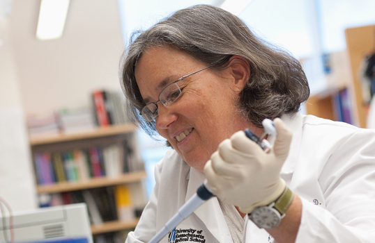 Melissa Moore, PhD, co-founder of MassTERi, shown in the lab.