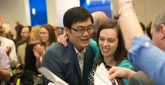 Opening their Match Day envelopes in unison at noon on Friday, Mar. 20, the School of Medicine Class of 2015 at UMass Chan Medical School erupted in shouts of joy as they learned where they will begin their careers as doctors.
