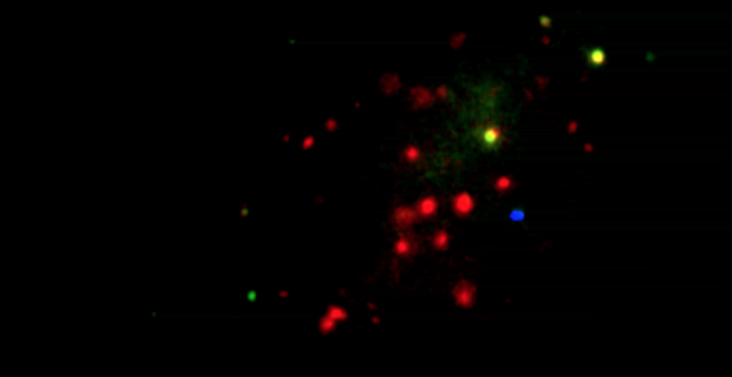 In order to see and track the CRISPR/Cas9 complex once it is bound to the genome, Ma engineered the guide RNA to include one of three primary fluorescent proteins: red, green or blue. These proteins can then be observed and tracked in real time under a microscope. By attaching a second fluorescent protein to the guide RNA, Ma was able to combine the three primary colors to generate three additional labels: cyan, magenta and yellow. A seventh label, white, is achieved by combining all three primary colors.