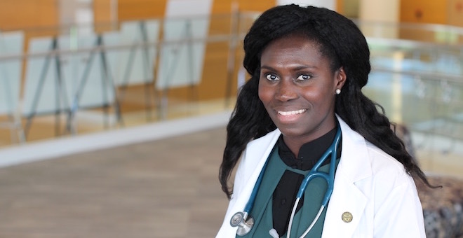 Marian Younge entered the Worcester Public Schools at age 10 when her family came to Worcester from Ghana. Now a second-year School of Medicine student, the North High School graduate credits her involvement in the pipeline for influencing her decision to pursue a career in medicine, and for helping her gain admission to Tufts University and UMass Medical School.