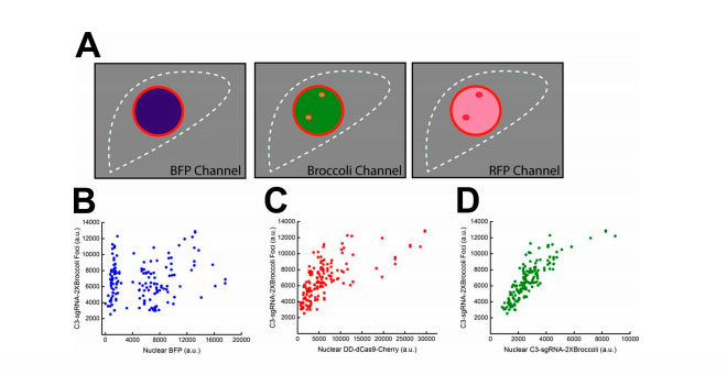 Because the underlying dynamics of how the CRISPR/Cas9 system works inside live cells aren’t well understood, some delivery systems and techniques have been more successful than others. In order to observe the actions of the CRISPR/Cas9 system at work in a live cell, Dr. Pederson and colleagues developed a technique for labeling the guide RNA and Cas9 elements with different florescent molecules so they could be tracked simultaneously. The research team included Hanhui Ma, PhD, research specialist in the Pederson laboratory and co-first author of the Journal of Cell Biology article; David Grunwald, PhD, assistant professor of the RNA Therapeutics Institute; and Li-Chun Tu, PhD, postdoctoral fellow in the Grunwald lab.