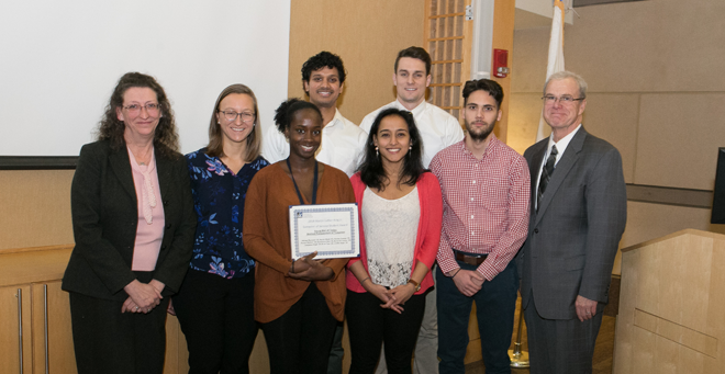 Dean Flotte presented the 2018 MLK Semester of Service Student Awards. With funding of $500 each, the three projects will facilitate a student day of service to Worcester community organizations, maintain a STEM enrichment program for middle school girls and continue a program that assists young men of color who want to pursue careers in medicine.