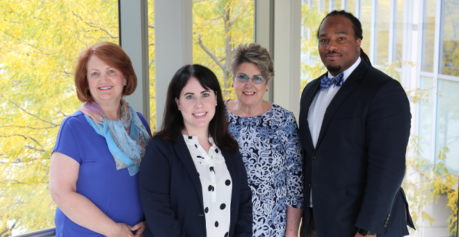 The School of Medicine Admissions Office at UMass Medical School was honored with the Chancellor’s Award for Advancing the UMMS Mission at the 41st Annual Employee Service Awards Dinner on Wednesday, Oct. 9. Chancellor Michael F. Collins recognized Karen Lawton, director of admissions; Jennifer Lee Shea, admissions coordinator; Brenda Fusaro, interview coordinator; and Paul Charles, project coordinator.