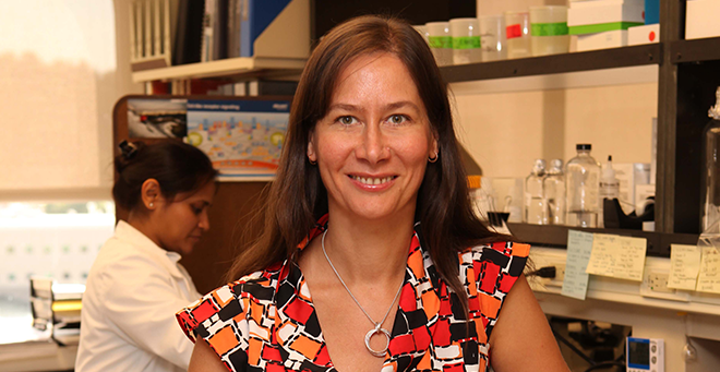 Research from the lab of Milena Bogunovic, MD, PhD, associate professor of pathology, shows that a specific combination of cells is necessary for the activation, initiation and control of immune responses to infection in the intestine. Published in Science Immunology, the study found that a certain subtype of macrophage (white blood cells that engulf foreign or infective bodies) present in the intestine induce activation of protective Immunoglobulin A (IgA) antibodies in response to Salmonella infection. A better understanding of how the immune systems responds to enteric infections such as Salmonella, and other bacteria, is critical to the development of vaccines for illnesses that are becoming increasingly resistant to standard antibiotics.