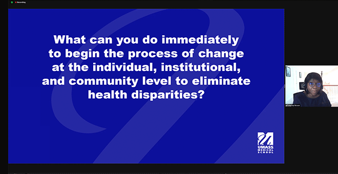 Jeroan Allison, MD, MS, chair and professor of population & quantitative health sciences, was one of the facilitators of A Campus Conversation on Health Equity and Eliminating Health Disparities, held over Zoom on Thursday, Oct. 22. Dr. Allison began his comments by pointing out that although Kendi doesn’t have a chapter on health equity, he writes about his battle with colon cancer.