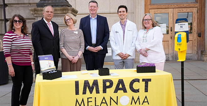 Laurie Seavey (IMPACT Melanoma), Worcester Mayor Joseph M. Petty, Deb Girard (IMPACT Melanoma), Worcester City Manager Edward Augustus Jr., Christopher Fay, Worcester City Councilor Kate Toomey