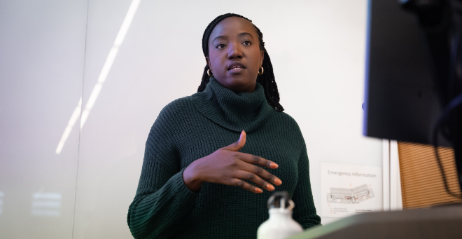 The Diversity and Inclusion Office brought back its Black Excellence at UMass Chan series for Black History Month, with a focus on student scholarship. Atinuke G. Oyinbo, MPH, a PhD candidate in the Morningside Graduate School of Biomedical Sciences, discussed how acculturation research is conducted in the African diaspora and how it can be applied to Black migrant populations. Favour Akabogu, a PhD student in the Morningside Graduate School of Biomedical Sciences, discussed her research on therapeutic strategies for gastrointestinal stromal tumors.