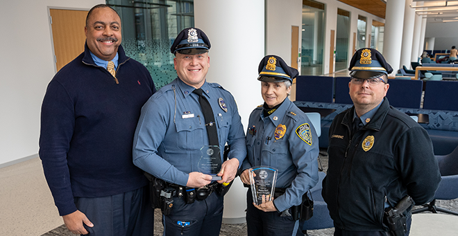 Two members of the UMass Chan Medical School Public Safety Department are being recognized by the Massachusetts Association of Campus Law Enforcement Administrators for going above and beyond in their commitment to serve and protect the campus community.