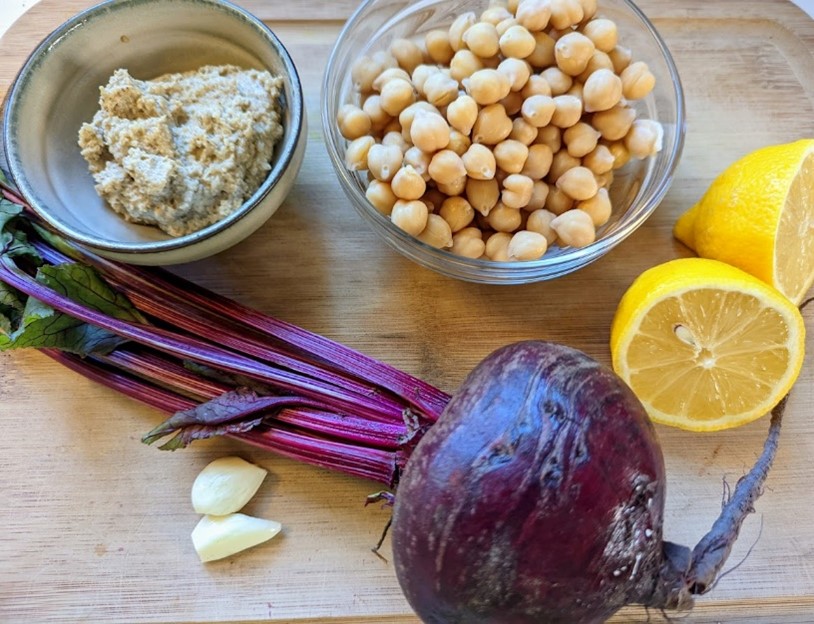 Recipe adapted by Rene Maserati from https://www.ambitiouskitchen.com/roasted-beet-hummus/