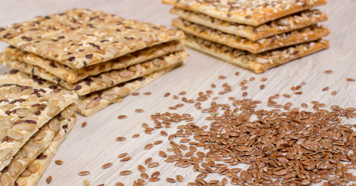 - In a large bowl, combine the almond flour, salt, flax meal, sesame seeds, pumpkin seeds, and dried herbs. In a medium bowl, whisk together the canola oil and eggs. Stir the wet ingredients into the almond flour mixture until thoroughly combined