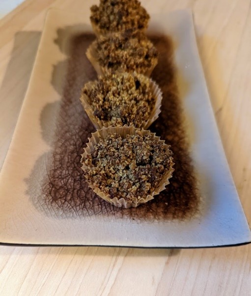 6. Drop 1 small spoonful of muffin batter into muffin liners. Top with streusel and bake. If streusel is turning too dark, cover with foil until muffins are done. Use toothpick to test.
