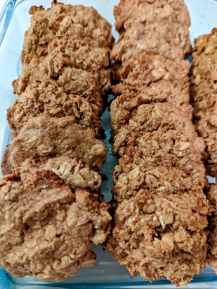 4. Place 1 spoonful of dough onto cookie sheet. Wet fingers and press cookies down. Bake for 15-20 minutes or until slightly crispy and golden brown. Store in air-tight container up to 1 week.