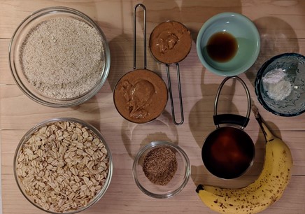 2. Combine oats, oat flour, baking soda, baking powder, and salt.