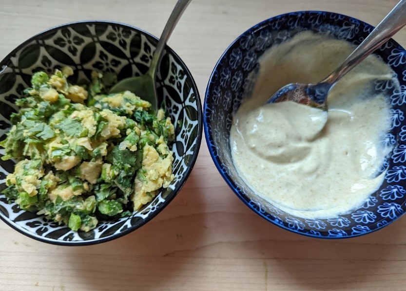 - Smashed Chickpeas with Cumin Turmeric Yogurt