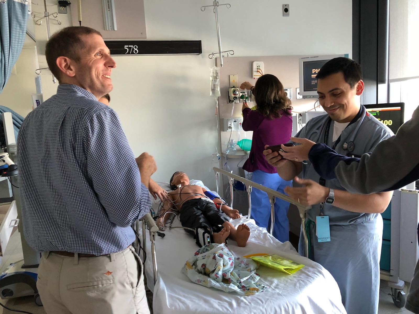 We strive to incorporate pediatric simulation experiences throughout residency training in order to develop clinical skills, foster teamwork and leadership, and improve patient care. Our Pediatric Simulation Committee is composed of a multidisciplinary group of physicians, nurses, residents, medical students, respiratory therapists and pharmacists.