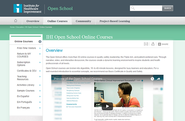 How to access it: Go to http://www.ihi.org/education/ihiopenschool/Pages/default.aspx and create a login.
