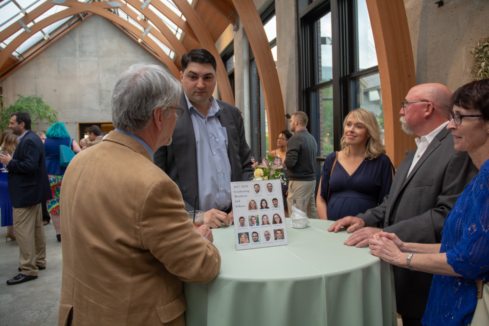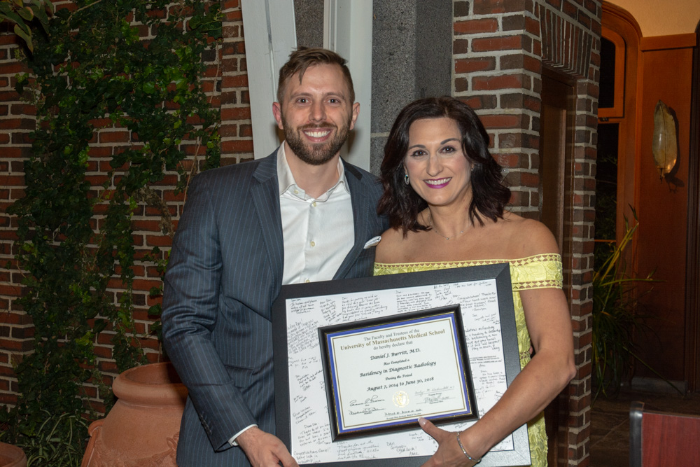 Several other awards were presented during the evening. The Jerry Balikian "Extra Mile" Award was presented to Daniel Burritt. The graduating residents honored Young Kim, MD with the Teacher of the Year Award. Madison (Ballard) McKenney received the 2018 RSNA Roentgen Resident/Fellow Research Award. Dr. DeBenedectis presented gifts, thanks and praise for the graduating Chief Residents Daniel Burritt and Anna Kuhn. She also gave special thanks and gratitude to the faculty who served as Residency Mentors; Alan Goldstein, Ryan Tai, Chip Watts, Helen Kim and Karen Buch.