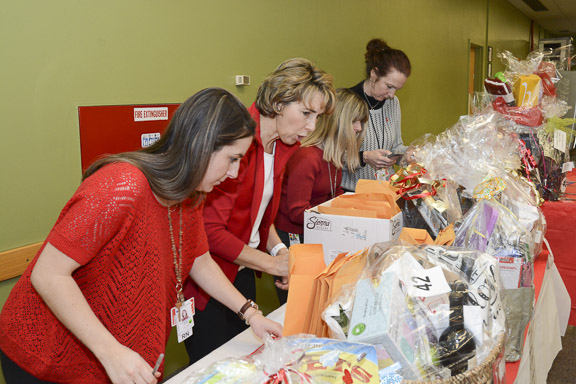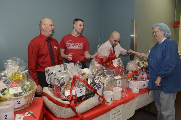 The Go Red team raised more than $10,000 through their annual raffle basket fundraiser for the American Heart Association. The team was led by Kathy Green, Senior Director of Radiology Services, assisted by Vilma Merkelis; Marcia Amaral and Michele Foley at Memorial, Susan Gustafson atFront Street, Linda Anderson and Sharon Krupski at Hahnemann. Many thanks go to all those who assisted each day moving baskets back and forth and helping with ticket sales; Tim Clark, Kevin Reynolds, Steve Beaudoin, Steve Giangrande, Debbie Pellegrino, Diane Kuindersma, Kaitlin McFadden, Jason Wilder, and Phil Bottone. More than fifty (50) baskets were donated by many UMass Memorial departments. Congratulations to the more than 50 winners and thank you to the Go Red team and those who supported educating our employees about women and heart disease. Over the last 4 years, the team raised a total of $38,901!