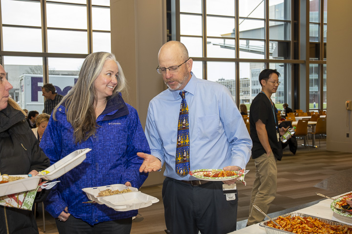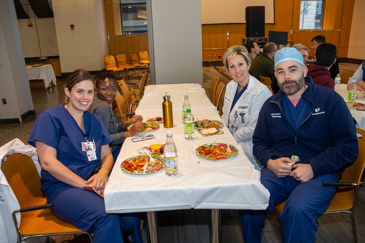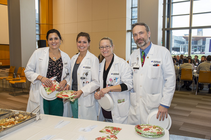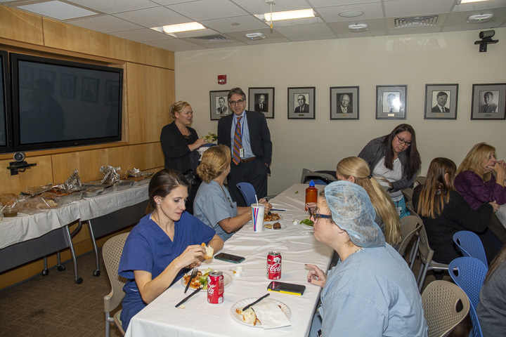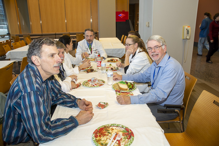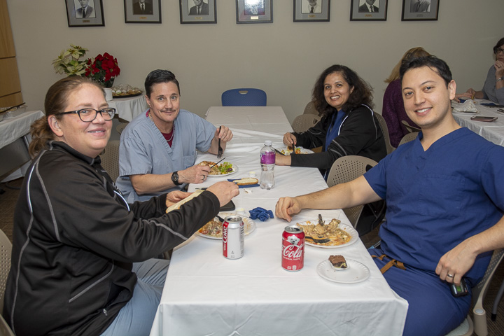 The Radiology Department hosted Holiday Parties at the Memorial, Hahnemann and University Campuses, December 10 and 12. The hosts and organizing team included Kathy Green, Lauren George, Marcia Amaral, Steve Beaudoin, Patrick St. Jean, Kevin Reynolds, Linda Anderson and Max Rosen. Staff enjoyed the Italian luncheon and a chance to relax and visit with colleagues.