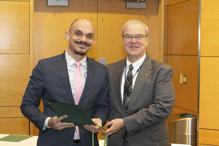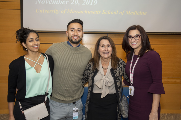 Pictured below is Dean Flotte presenting the awards and Drs. Kutcher-Diaz and Pavidapha with their families and Dr. DeBenedectis, the Director of the Radiology Residency Program.