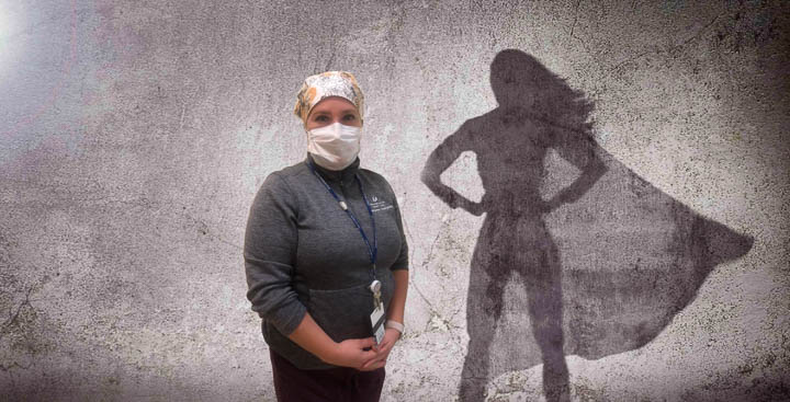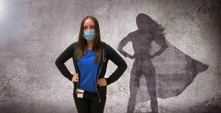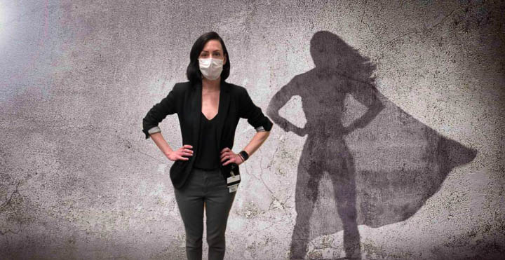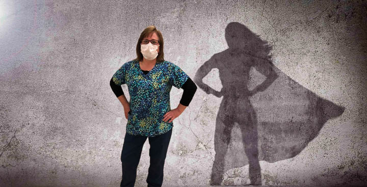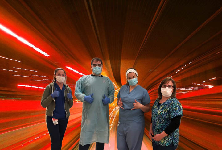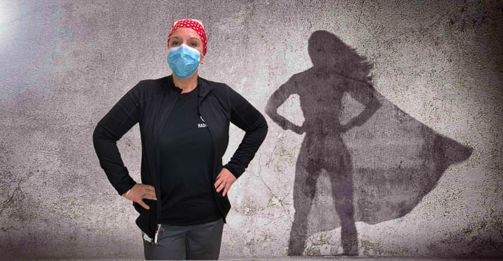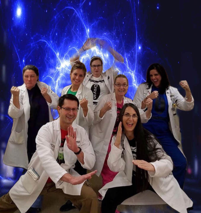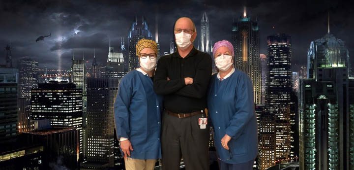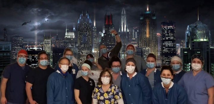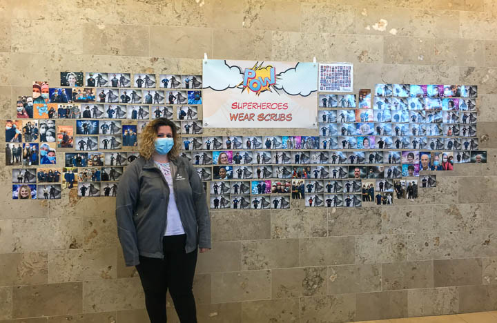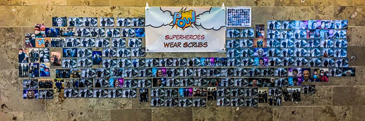 Radiology Ambulatory Services Rep, Linda Lopez wanted to do something that recognized Radiology staff who are on the frontlines every day. Inspired by her colleagues, Linda created a Superheroes Wear Scrubs wall that hangs in the first floor of the Radiology Department on the University Campus. Linda posed and took photos of masked frontline staff during the Covid-19 pandemic. Then collected images of many of the staff she was unable to photograph. Linda edited the images in Photoshop, then printed and posted the wall of Superheroes! What a great tribute Linda, Wow! 💥💝
