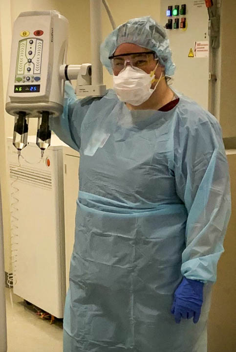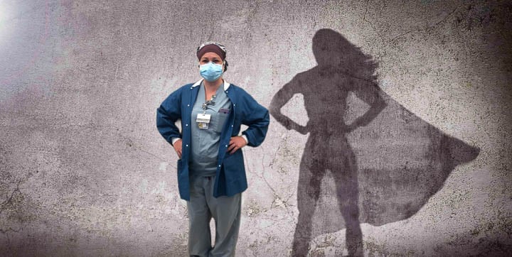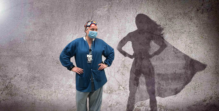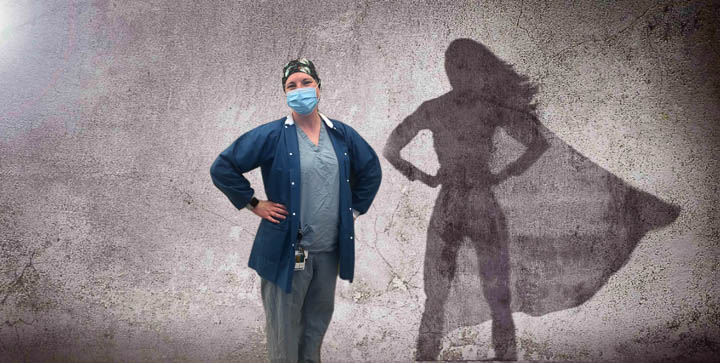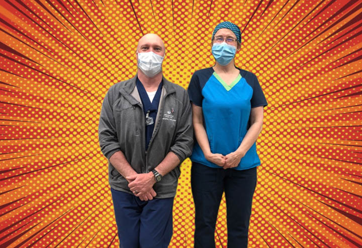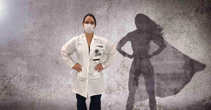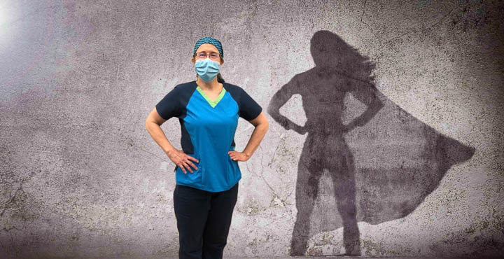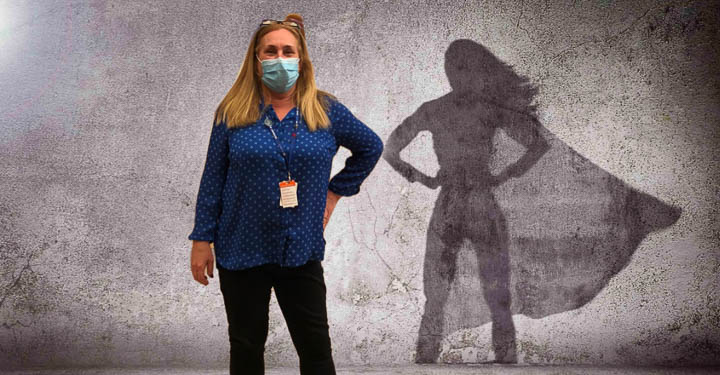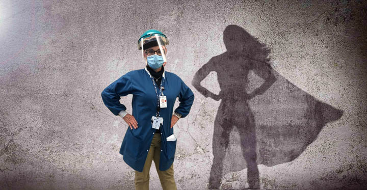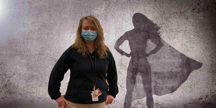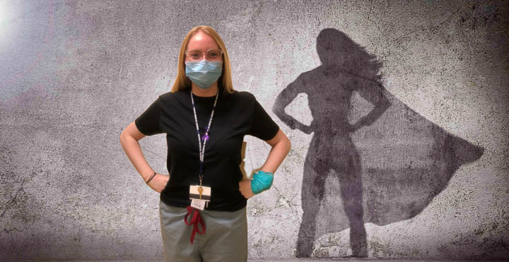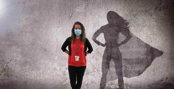 Radiology Ambulatory Services Rep, Linda Lopez wanted to do something that recognized Radiology staff who are on the frontlines every day. Inspired by her colleagues, Linda created a Superheroes Wear Scrubs wall that hangs in the first floor of the Radiology Department on the University Campus. Linda posed and took photos of masked frontline staff during the Covid-19 pandemic. Then collected images of many of the staff she was unable to photograph. Linda edited the images in Photoshop, then printed and posted the wall of Superheroes! What a great tribute Linda, Wow! 💥💝