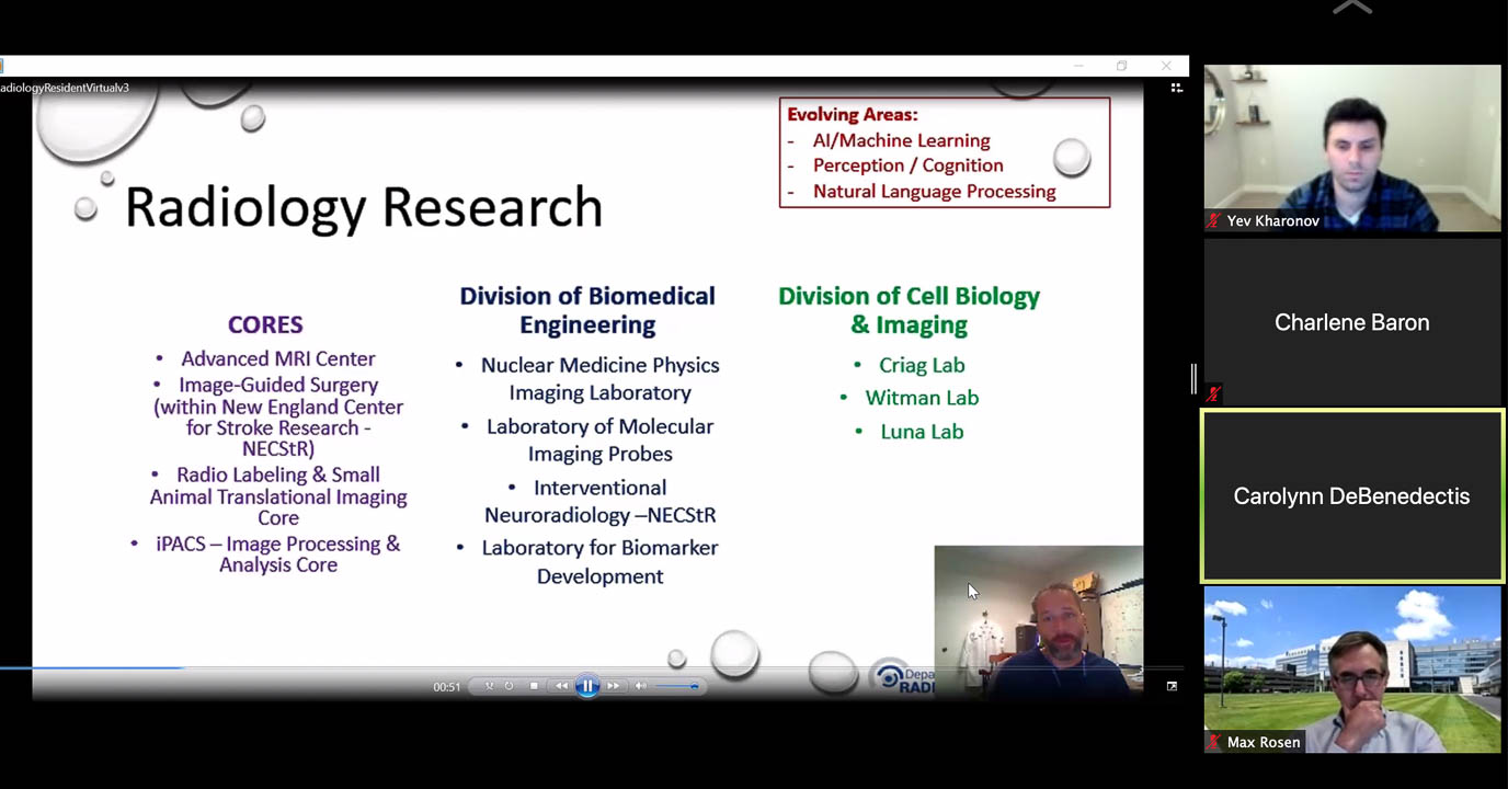 The sessions included a program overview presented by Radiology residency director, Carolynn DeBenedectis, MD; a welcome by department chair Max Rosen, MD; an overview of the Interventional Radiology Residency by program director Aaron Harman, MD; a video about Radiology research from Matt Gounis, PhD and breakout sessions for Q&A with current residents.