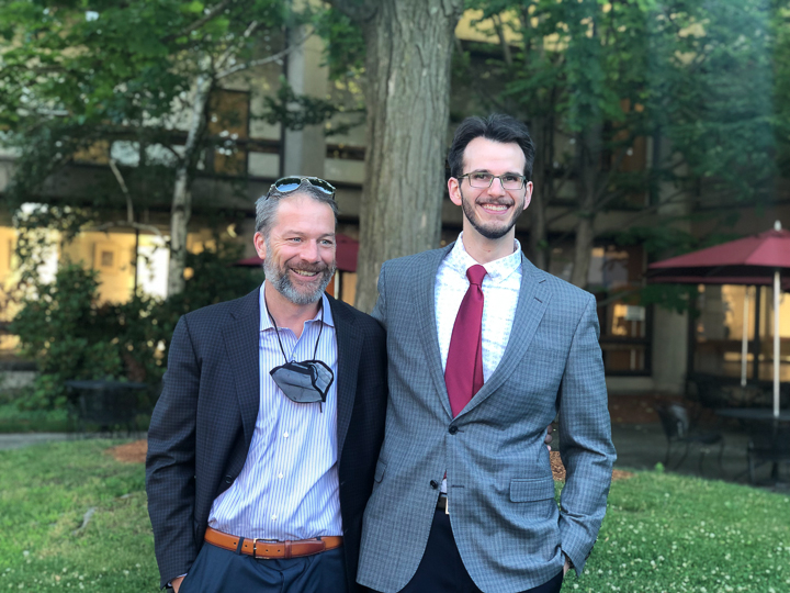 On June 24 the Department of Radiology hosted the annual graduation ceremony outside in the courtyard of the Worcester Art Museum. Unlike past years, the guest list was limited to fellows, residents graduates and their families, the program directors and administrators. Carolynn DeBenedectis, director of the diagnostic residency program, opened by saying "Normally I start this speech off by saying 'we have had another great year in the radiology residency here at UMass, due to our wonderful residents.' However, this year I want to start by saying we had an extremely challenging year and a half and we made it through because of our wonderful, resilient residents ... I cannot express how proud I am of these 19 residents for overcoming so many challenges this year and do it with a positive attitude all while providing excellent care to our patients."