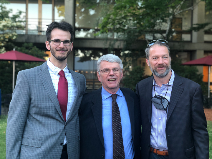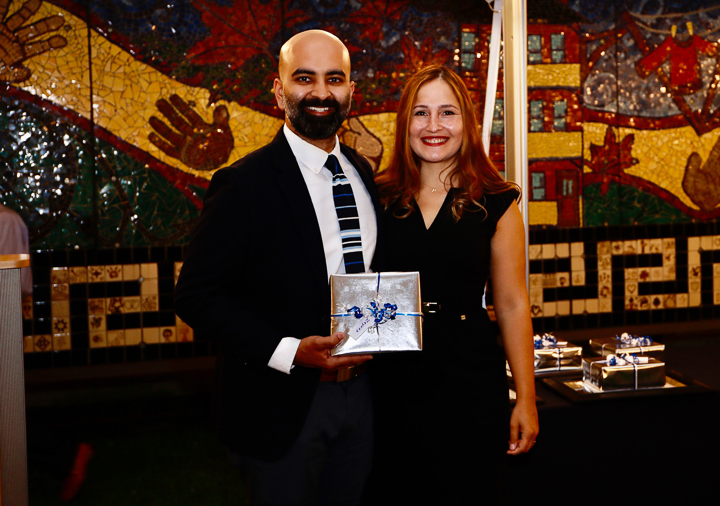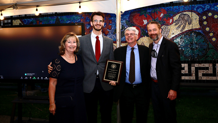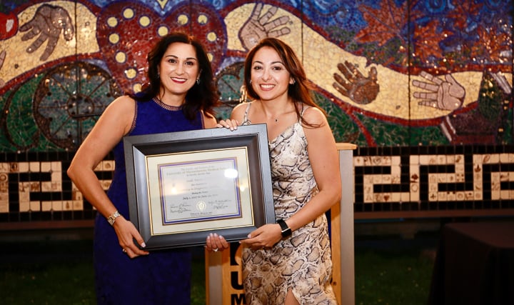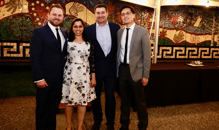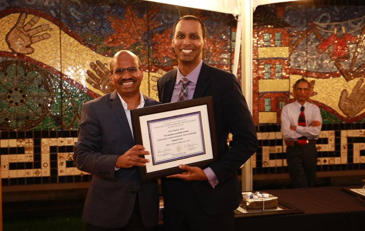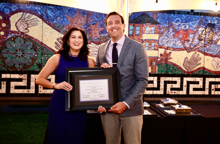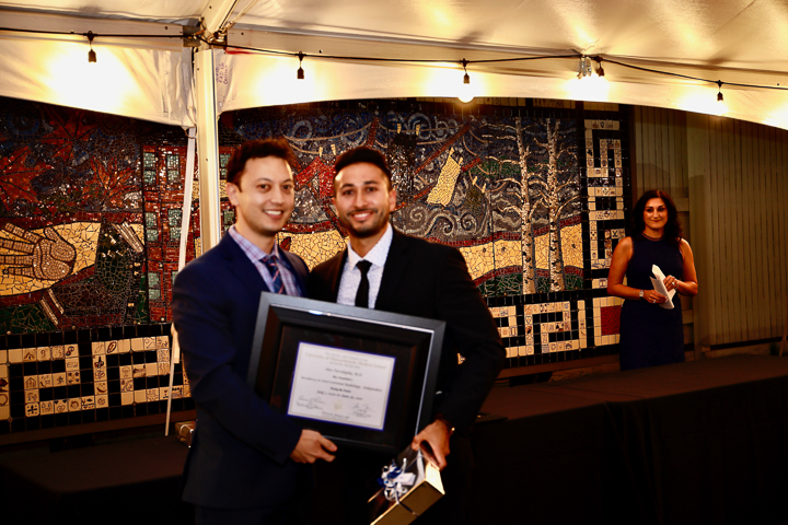 The evening included a social hour special awards and diplomas for the graduates. A new honor, the Michael A King, PhD Award for excellence in research was presented for the first time, to Robert King, PhD. Some of the 2020 graduating class (Venkatesh Murugan, Alex Pavidapha, David Radcliffe, and Evan Ruppell), who did not get a true graduation celebration last year (zoom) were able to attend for a belated celebration. Dr. DeBenedectis thanked the graduating chief residents, Dr. Derek Chicarilli and Dr. Roberto Kutcher. She also announced the new chief residents – Drs. Tina Shiang, Sameer Hanfi, and IR chief Dr. Yara Younan.