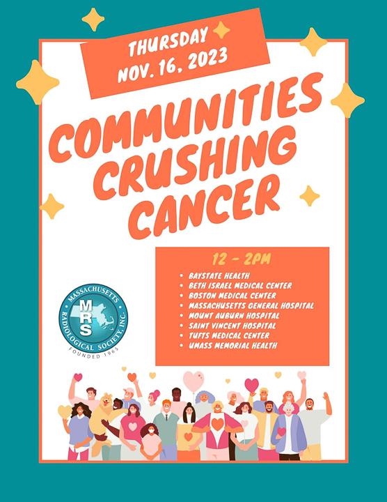 Communities Crushing Cancer is an initiative aimed at raising awareness about the importance of cancer screening. On November 16, 2023, radiology residents at UMass Chan Medical School engaged with patients, families, and members of the local community to educate and promote screening examinations and provide them with informational brochures about the process. In collaboration with the Resident and Fellow Section of the Massachusetts Radiological Society, residents from UMass and other programs across the state made this a far-reaching and impactful service to our surrounding communities.”