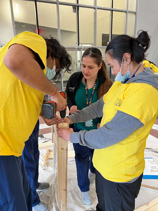 A team from Radiology participated in a Build a Bed project along with other teams from UMass Chan. The event was part of the Doctor's Day celebration week at UMass Chan. The "Supporting Sprouts: Build a Bed Volunteer Event" was held at UMass Chan Medical School on Tuesday, 3/26/2024.
