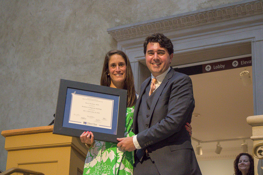 Alex Newbury, MD - Recognized by the Education Committee for outstanding achievement in the area of research by a radiology resident. He has participated in multiple projects, published peer-reviewed articles, and presented at national meetings during his residency. His name will be added to our wall plaque in the education office, commemorating past recipients of this prestigious award.