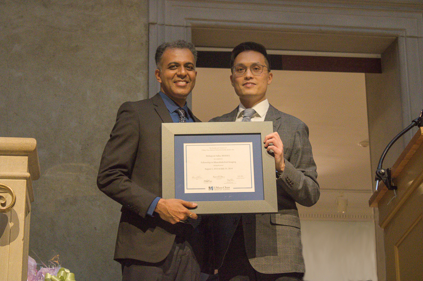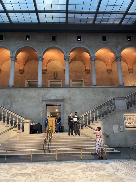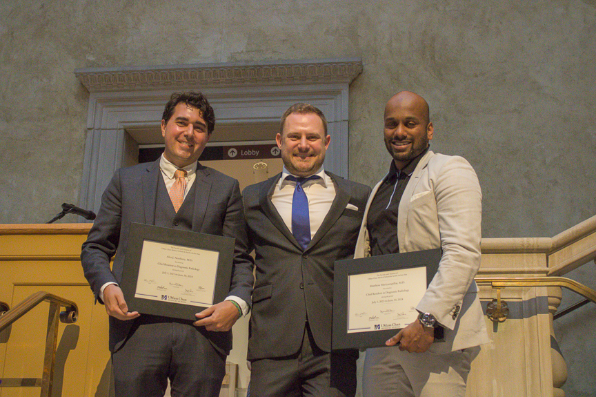 The 2024 Radiology Graduation dinner and ceremony was held on June 24 at the Worcester Art Museum. Graduation events kicked off in the morning with the 17th Annual Edward Smith Lecture given by by Dr. Pari Pandharipande and the presentation of the first "Dr. Ferrucci Radiologist of the Year Award." to Ryan Tai, MD. The evening events began with a cocktail hour followed by dinner and the awards presentations.