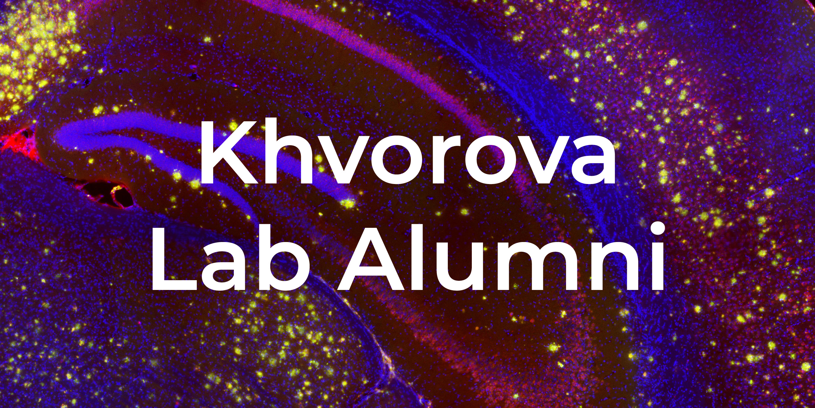 Former students and postdoctoral scholars from the Khvorova Lab, established 2012. Searchable by keyword (name, current role, etc), people (student/postdoc/clinician), and organization (RTI, Morningside Graduate School of Biomedical Sciences, T.H. Chan School of Medicine).