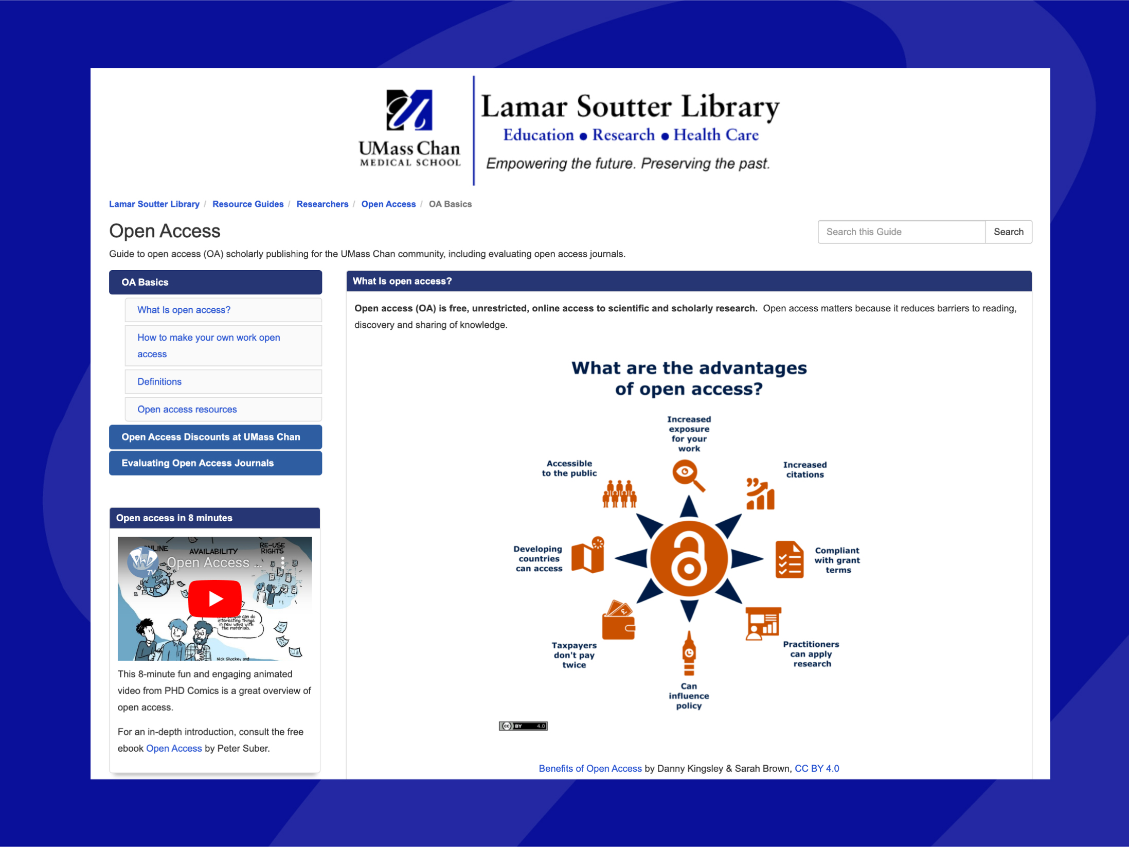 Confused about open access policies and whether you should choose the journal's open access option or self-archive your paper? The Lamar Soutter Library has developed a comprehensive guide to understanding open access scholarly publishing. Their resources include a list of journals that offer open access publication discounts to UMass Chan researchers.