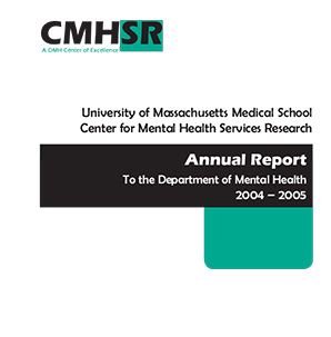 We are extremely pleased to present this annual report to DMH on the activities of its UMass Center for Excellence in Fiscal Year 2004-2005. The Center for Mental Health Services Research (CMHSR) has continued to flourish and expand its scope of work with DMH, its vendors, and other public sector agencies both within Massachusetts and beyond. The reputation of the Center and its faculty has also continued to grow locally, nationally and internationally. Our work with DMH leadership has become increasingly fruitful and beneficial to our research and service goals. And, of course, our basic research has continued to expand with a series of major new grants applied for during 2005, several of which have come to fruition since the end of the year.