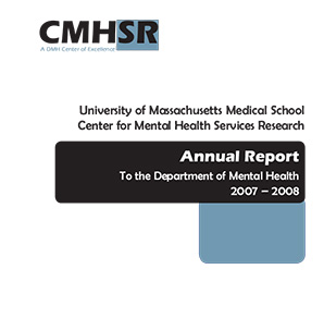 CMHSR is extremely pleased to introduce the annual report for Fiscal Year 2008 of the University of Massachusetts Medical School Department of Mental Health (DMH) Center for Excellence — The Center for Mental Health Services Research (CMHSR). We have made great progress toward the overall goals we proposed in our response to DMH’s RFR issued almost two years ago. These included: